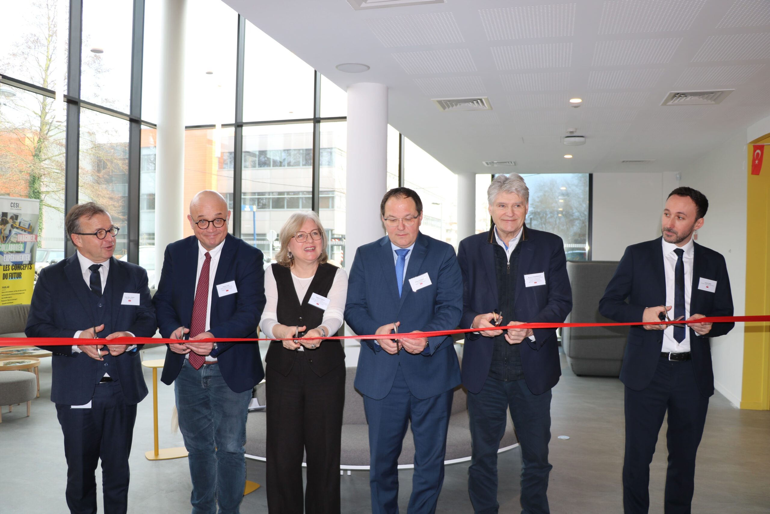 La matinée, riche en émotions, a débuté par les discours de Claude Lesur, Directeur du campus CESI de Lille, et de Jean-Marc Ogier, Directeur Général de CESI. Ces prises de parole ont été suivies par la traditionnelle coupe du ruban dans le hall principal, marquant officiellement l’ouverture de ce lieu de savoir.